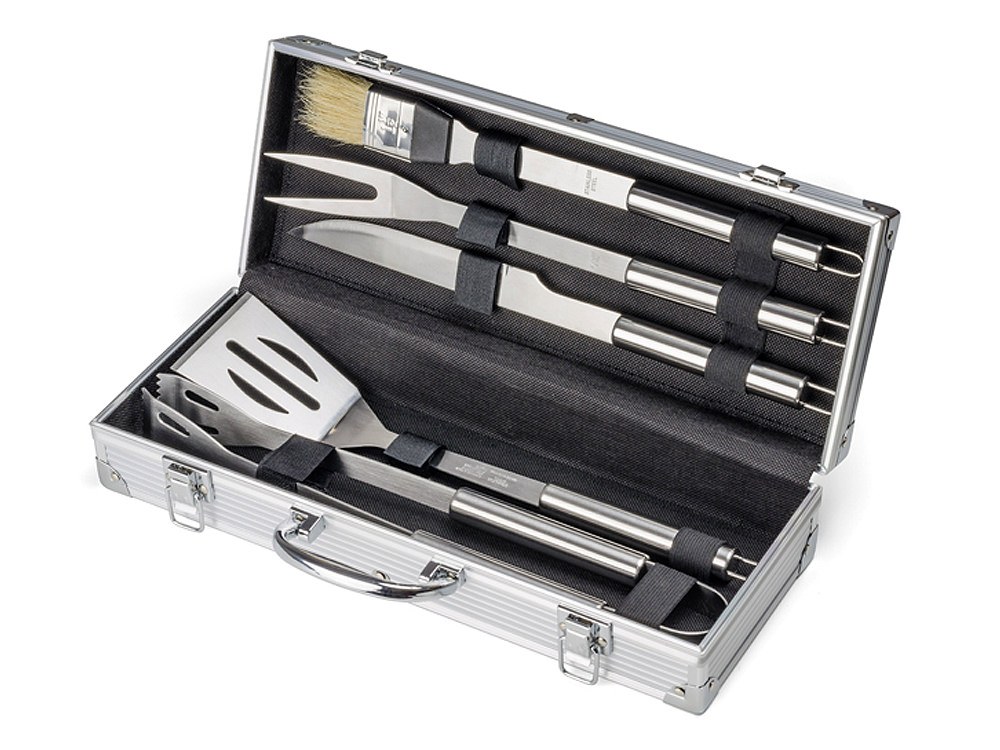 Grillkoffert Anders BBQ som kan graveres. 5 deler, alt du trenger for en vellykket grilling! En morsom, praktisk og personlig gave til grillmesteren!