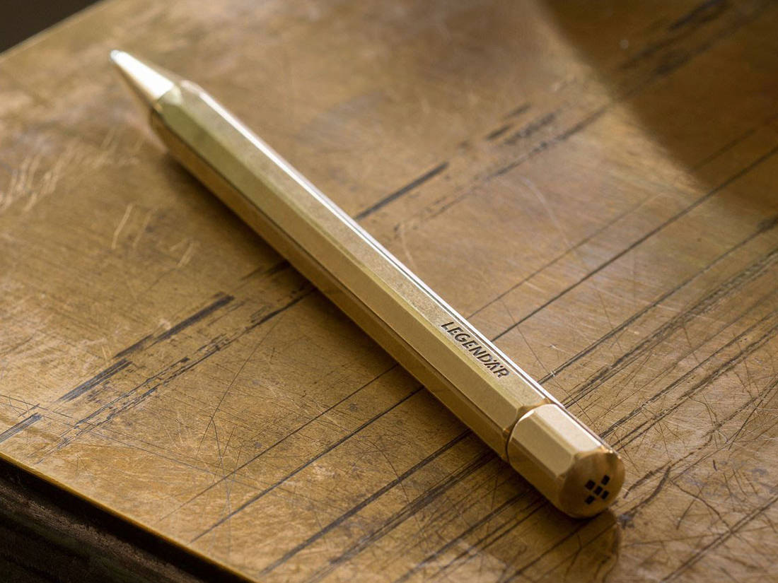Kulepenn med gravering Legendär Brass Twyst. En tung og solid kulepenn fra LEGENDÄR i elegant finish. Med egen graveringstekst blir det en unik og personlig gave. Pennen er laget av et stykke solid messing. Graveringen er elegant gullfarget.