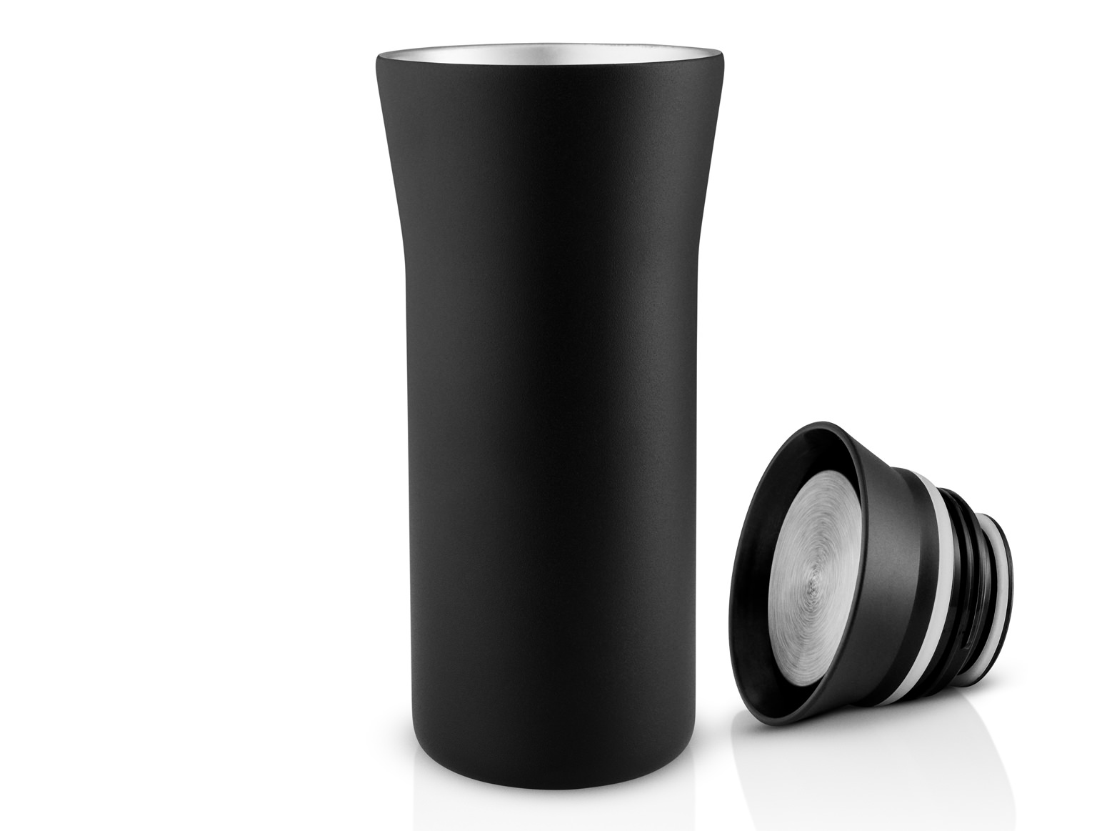 Termokopp Eva Solo City To Go Cup Black 0,35 L med din egen gravering. Et praktisk og stilig termoskrus fra danske Eva Solo. 100 % tett og lett å ta med seg overalt. Lokket åpnes og lukkes enkelt med én hånd, bare klikk på lokket. Det smarte lokket gjør også at du kan drikke fra termoskruset fra alle retninger.