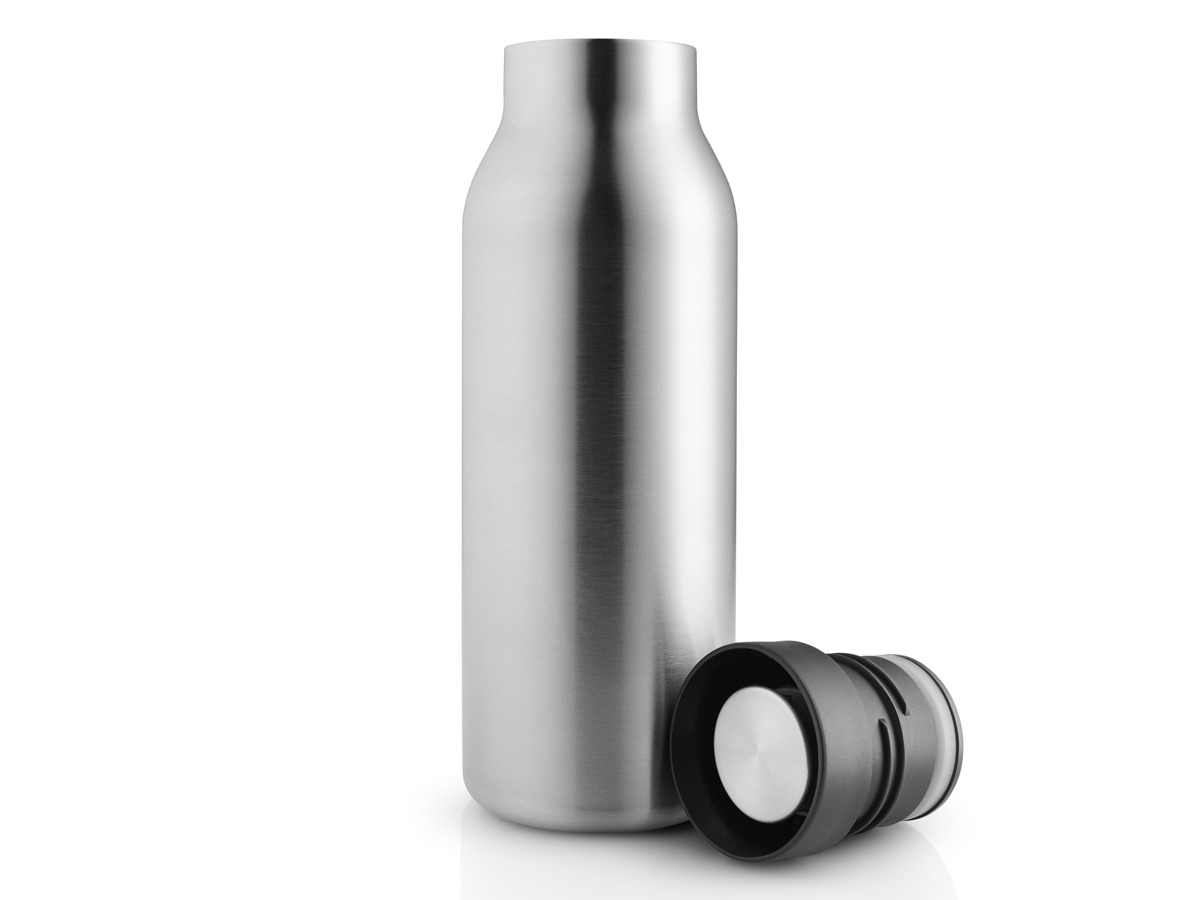 Termosflasken gjør at du alltid kan ha kaldt vann med deg på farten. De dobbeltveggede sidene med vakuumeffekt holder vannet kaldt lenge. Flasken er lett å betjene med én hånd, og det praktiske klikklokket gjør at du kan drikke fra alle sider.
