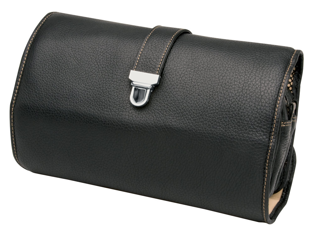 Toalettmappe herre med oppheng. Toalettmappe som kan henges opp, praktisk toalettmappe med krok. Erbe Travel lær svart. Kan graveres.